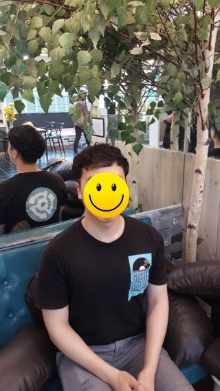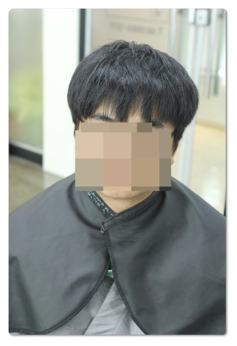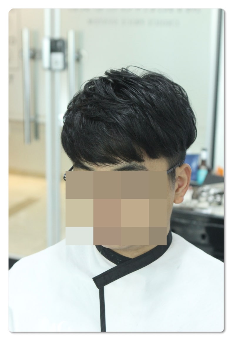 사진에서 볼 수 있듯이 투블럭펌을 보면 머리가 살짝 세미컬이 되어 자연스럽게 가르마가 된 상태였습니다. 하지만 머리는 앞머리만 내리니까 아주 평범한 헤어스타일처럼 보였어요.