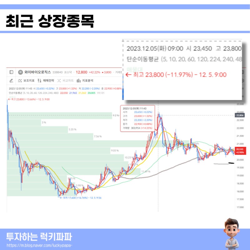 와이바이오로직스와 KNS 상장일 주가 및 매도전략