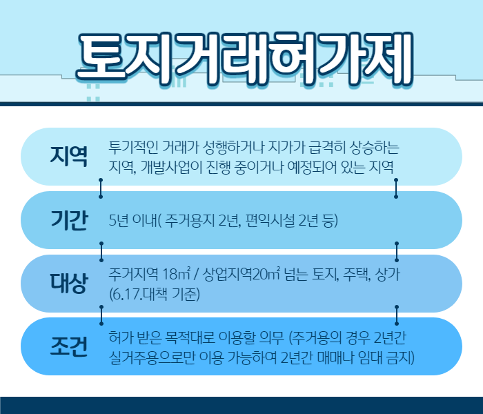 또한, 허가 후 거래를 하는 경우에도 실제 거주 기간이 2년으로 제한됩니다. 규제에서 알 수 있듯이 토지가 투기 목적으로 거래되는 것을 방지하기 위한 제도다. 이미 오랫동안 시행되어 왔습니다. 1979년에 도입된 지역으로 투기억제를 위해 시·도·시청 또는 국토교통부장관이 지정하는 지역이다. 토지거래허가구역이 되면 용도별, 일정 면적 이상인 경우에는 반드시 허가를 받아야 합니다.