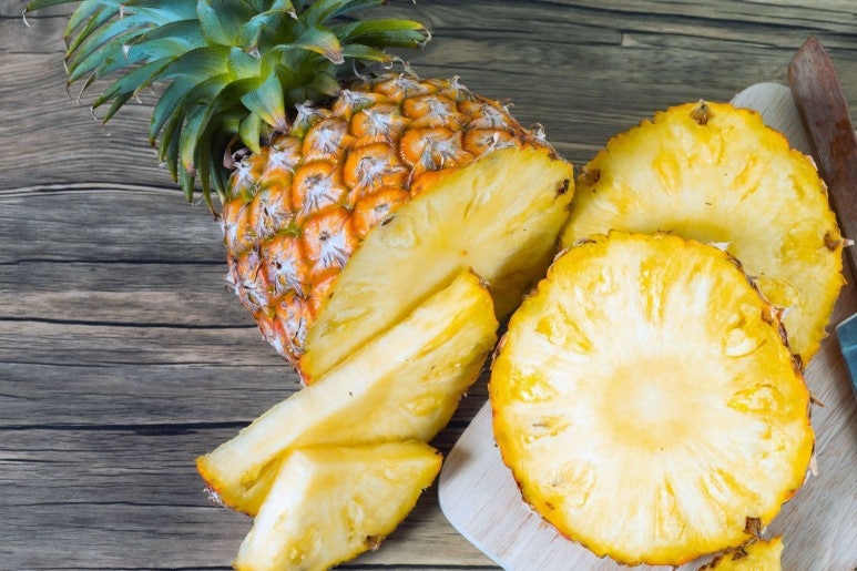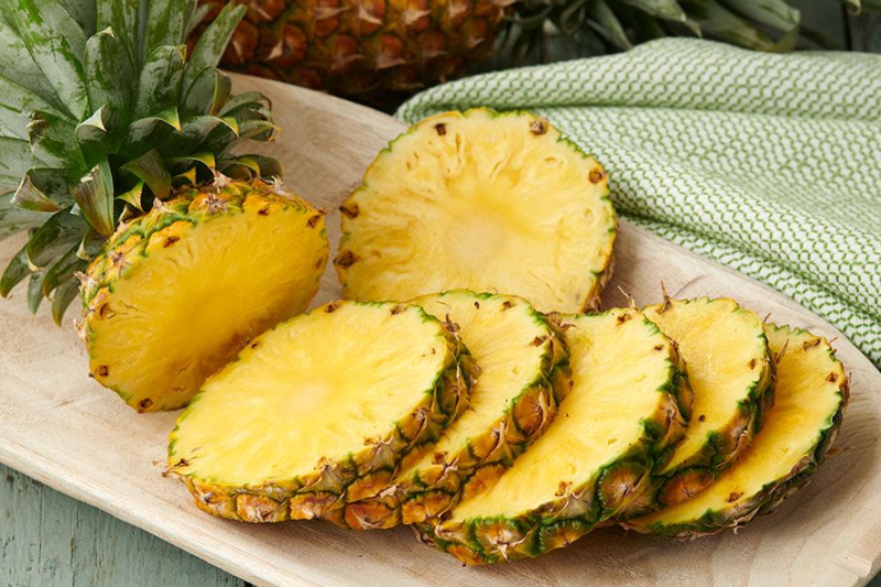 파인애플을 규칙적으로 먹으면 일어나는 놀라운 변화 10가지 1. 다이어트 효과 파인애플은 100g당 약 50kcal의 저칼로리 과일입니다.한국식품영양정보에 따르면 100g당 칼로리는 49kcal, 탄수화물은 12.63g, 단백질은 0.54g, 지방은 0.12g입니다. 이러한 낮은 칼로리 수와 풍부한 식이섬유는 포만감을 높이고 과식을 방지하며 체중 감량에 도움이 됩니다.또한 파인애플에 들어 있는 브로멜라인 효소는 단백질 분해를 촉진하고 소화를 돕고 신진대사를 활성화하여 체지방을 연소하는 데 도움이 됩니다.2. 소화 촉진 파인애플의 핵심 효소인 브로멜라인은 단백질 분해 효소입니다.이 효소는 음식의 단백질을 분해하여 소화를 돕고 위의 부담을 줄입니다.특히 고기와 함께 섭취하면 소화를 촉진하고 복부 팽창을 완화하는 데 효과적이며 브로멜라인은 염증을 줄이고 소화 건강을 증진하는 데에도 도움이 됩니다.