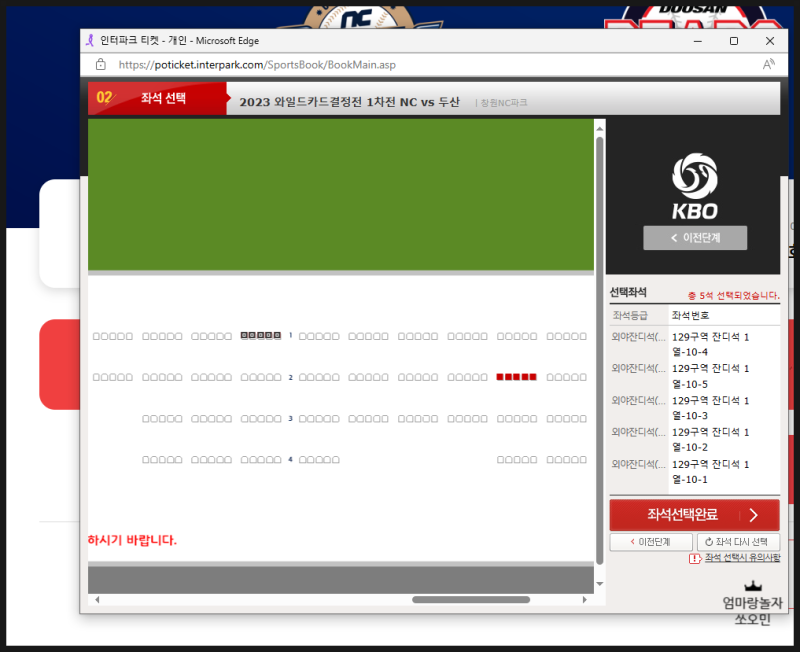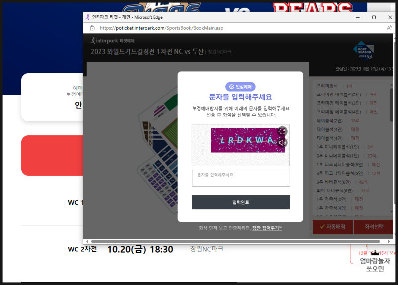 2023년 KBO 포스트시즌 예약 검토 팁 공유 (인터파크 새로고침 자동 배정)